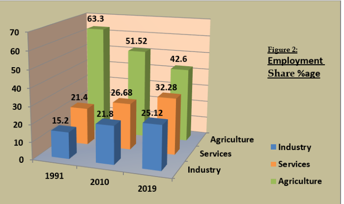 In India, the development process failed to change the occupational structure of labour force. Was it due to the sluggishness in the manufacturing sector or the fast growth of services? This trend witnessed in the Indian economy is both peculiar and tragic since it has not been accompanied by a corresponding increase in employment. This is one reason why despite enhancement in the size of the economy, India still lags in achieving inclusive growth; another being perpetual low productivity in the agriculture sector.